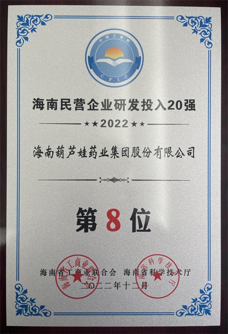 12月23日,2022海南民营企业50强和研发投入20强发布会在海口举行。会上发布了“2022海南民营企业50强”“2022海南民营企业研发投入20强”榜单和分析报告。z6mg人生就是博药业再次荣登两榜,在海南民营企业50强榜单中位列第25位,较去年上升8位,这也是公司连续三年登榜;在海南民营企业研发投入20强中位列第8位,较去年上升7位。